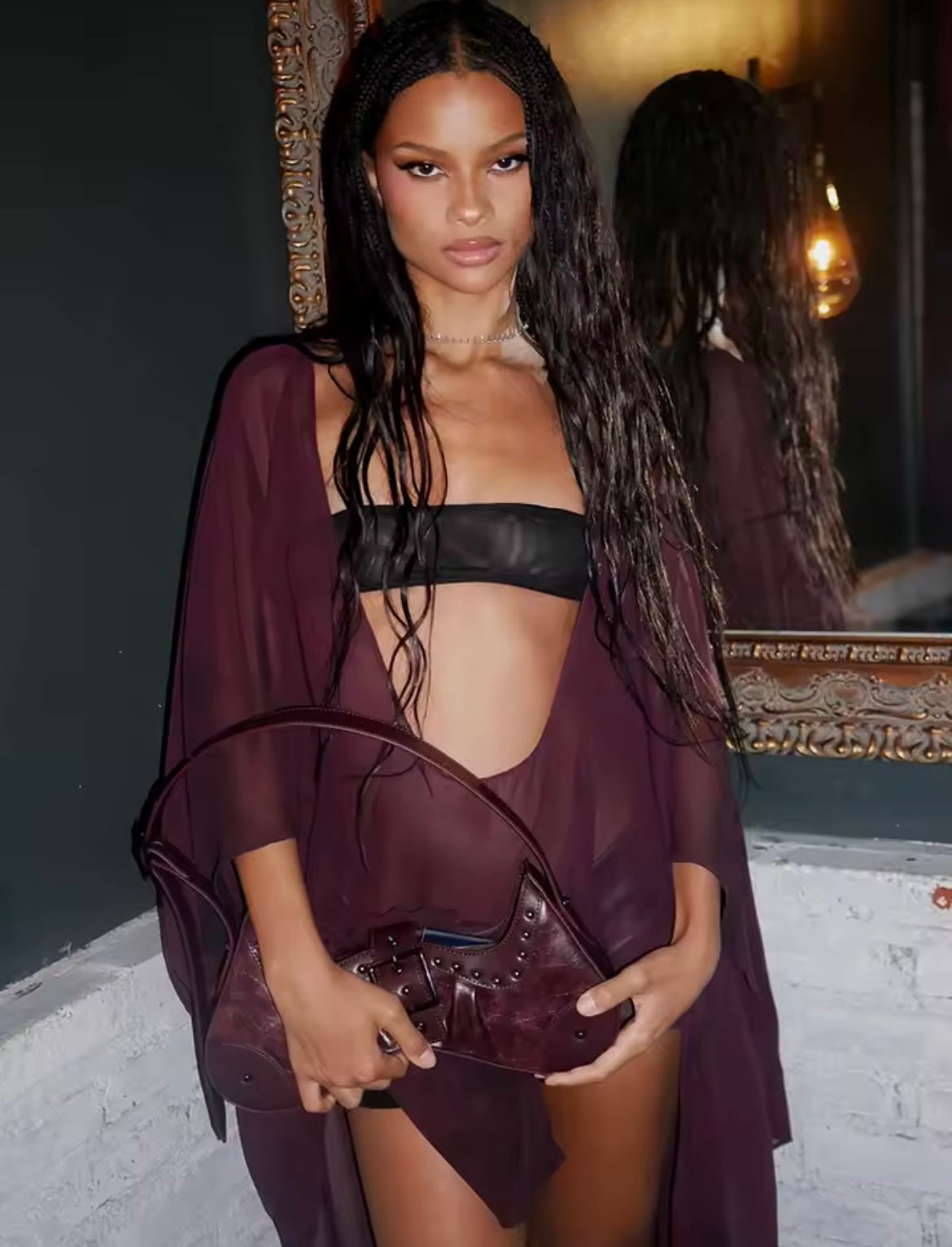 Porté avec un short en cuir, un jean taille basse ou même sur un bikini, il transforme ton allure en statement VELENOSA. Fluide, sensuel et hypnotisant, il fait tourner toutes les têtes sans que tu n’aies à dire un mot.